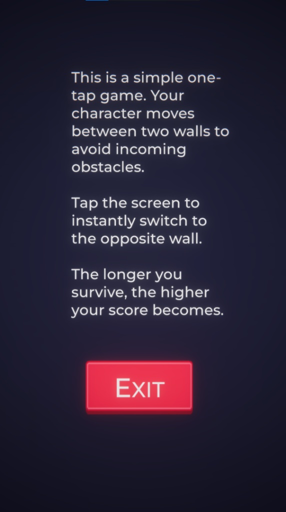 - This is a simple one-tap game. Your character moves vertically between two blue walls.